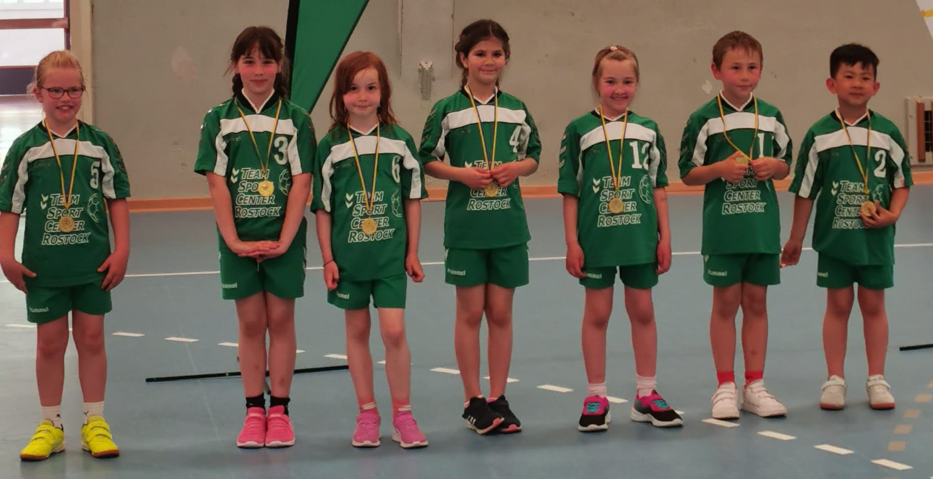 Am vergangenen Sonntag folgte unsere zukünftige F-Jugend einer Einladung des HC Empor Rostock, welcher im Rahmen der AOK-Aktionstage ein Turnier ausrichtete. Neben unserem Team folgten weitere sieben Mannschaften aus ganz MV der Einladung. Es wurde in 2 Gruppen gespielt mit jeweils 4 Mannschaften. Mit den Mannschaften vom SV Warnemünde, Stralsunder HV und die Mecklenburger Stiere wartete in der Vorrunde eine anspruchsvolle Gruppe auf unser Team. Leider führten ein paar kurzfristige Absagen dazu, dass uns für das Turnier nur 7 Kinder zur Verfügung standen, was die Aufgabe nicht einfacher machte. Im ersten Spiel trafen wir auf die Mannschaft des SV Warnemünde. Es war ein sehr spannendes Spiel in dem unsere Mannschaft durch großen kämpferischen Einsatz sich mit einem 5:3 Sieg belohnen konnten. Im zweiten Spiel trafen wir auf den Stralsunder HV. Die Stralsunder waren uns körperlich und technisch weit überlegen. Somit mussten wir uns mit einem 7:0 geschlagen geben. Zum Abschluss der Vorrunde trafen wir auf die Mannschaft der Mecklenburger Stiere. Mit einem Erfolg gab es noch die Chance auf den 2.Platz in der Gruppe. Die Stiere erwiesen sich als technisch versierte Mannschaft. Aber trotz großartigem Einsatz und super Paraden unseres Torwarts reichte es am Ende nicht ganz. Nun war es an der Zeit sich in die Kabine zurückzuziehen und erstmal Energie zu tanken und einmal durchzuschnaufen, bevor es im B-Pokal weiterging. Erster Gegner war die Mannschaft vom Rostocker Handball Club. In diesem Spiel konnten wir dann auch unsere Stärken ausspielen und alle unsere Kinder belohnten sich mit mindestens einem Tor, so dass am Ende ein deutlicher 11:0 Sieg auf der Anzeigentafel stand. Im abschließenden Spiel ging es gegen die Mannschaft des SV Motor Barth. Unsere Kinder gaben noch einmal alles. Bis zum Ende der regulären Spielzeit entwickelte sich ein spannendes Spiel, welches mit einem 4:4 endete. Erwähnenswert ist, dass unsere Torhüterin zwei 7-Meter entschärfen konnte!